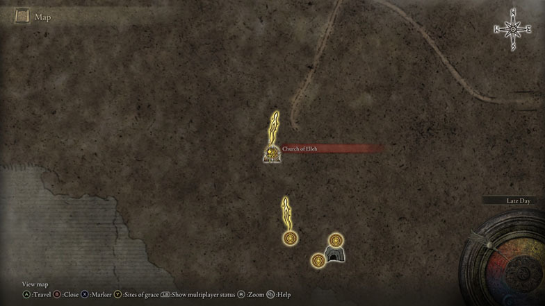 게임을 막 시작했다고 가정하고 오버월드에서 첫 번째 은혜의 사이트를 활성화하면 됩니다. 다음 주요 목표의 방향을 보여주는 황금빛 오라가 지도에 나타납니다.