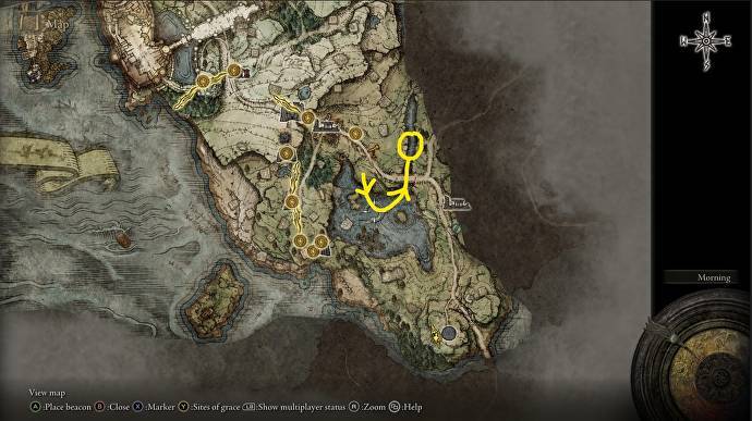 그것에 손을 대려면 첫 번째 단계에서 남동쪽 지도의 회색 원인 Forlorn Hound Evergaol 로 가십시오.