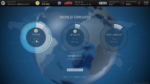 그러면 이번 작품의 메인인 "월드맵"으로 진행합시다. 이 모드는 역대 그란 투리스모에 탑재되어 온 캠페인 모드로, 기본적으로는 플레이어가 자동차를 사서 레이스나 라이센스 취득 등에 참가, 일정한 성적을 거두면 보상을 얻을 수 있고, 한층 더 튜닝이나 다른 자동차 를 구입해 간다……라는 실제의 카 라이프를 시뮬레이트한 모드가 됩니다.
