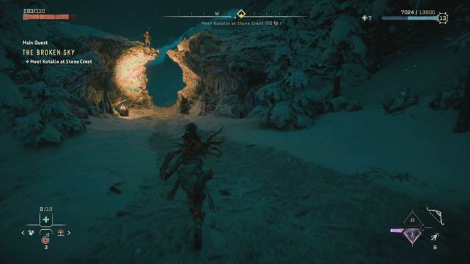일단, 해당 지역의 입구로 돌아가서 그곳에서 당신을 기다리고 있는 데카와 대화하십시오. 그녀는 Sharpshot 활 을 넘겨줄 것 입니다. 대화 후 목표가 업데이트됩니다.