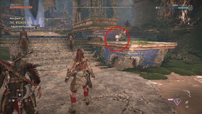 코탈로가 멈추면 가까이에 있는 경비병에게 다가가 말을 걸면 된다. 그렇게 하면 그가 우리를 Tekkoteh의 왕좌의 방으로 초대하여 채팅을 하도록 허락할 것입니다... 그는 우리가 원하는 일을 하고 싶지 않다는 것이 밝혀졌습니다. 다행히 Aloy는 아이디어가 있습니다.