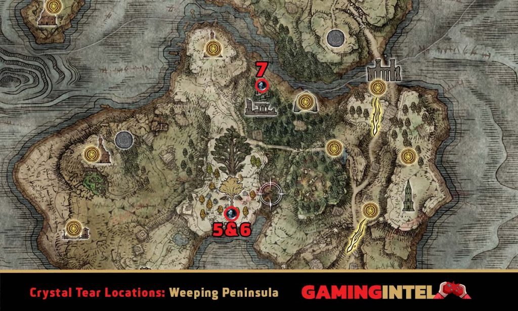 - 4 . Spiked Cracked Tear – Minor Erdtree 근처의 작은 돌 분지에서 발견됩니다. Greenspill Crystal Tear 옆.