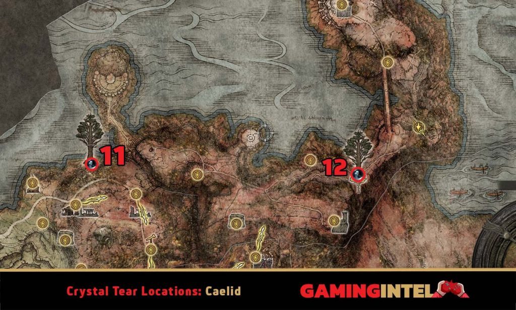 - 11 . 다음 두 수정의 눈물은 모두 Caelid 북서쪽 지역의 Minor Erdtree에서 Erdtree Avatar를 처치한 후 드랍됩니다.