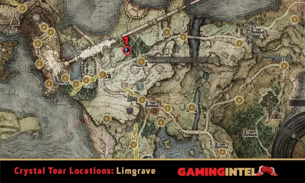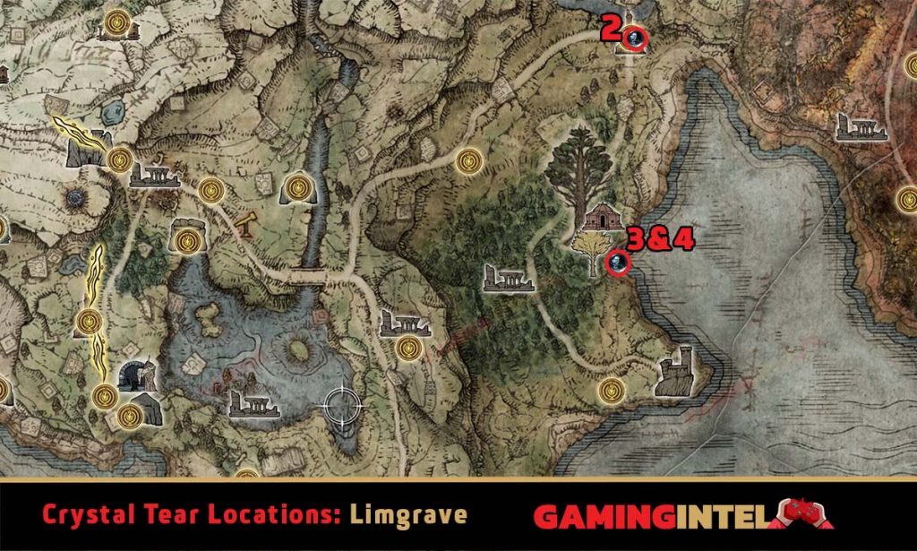 - 3 . Greenspill Crystal Tear – Minor Erdtree 근처의 작은 돌 분지에서 발견됩니다. Minor Erdtree의 남쪽 지역 바로 아래에서 볼 수 있습니다.