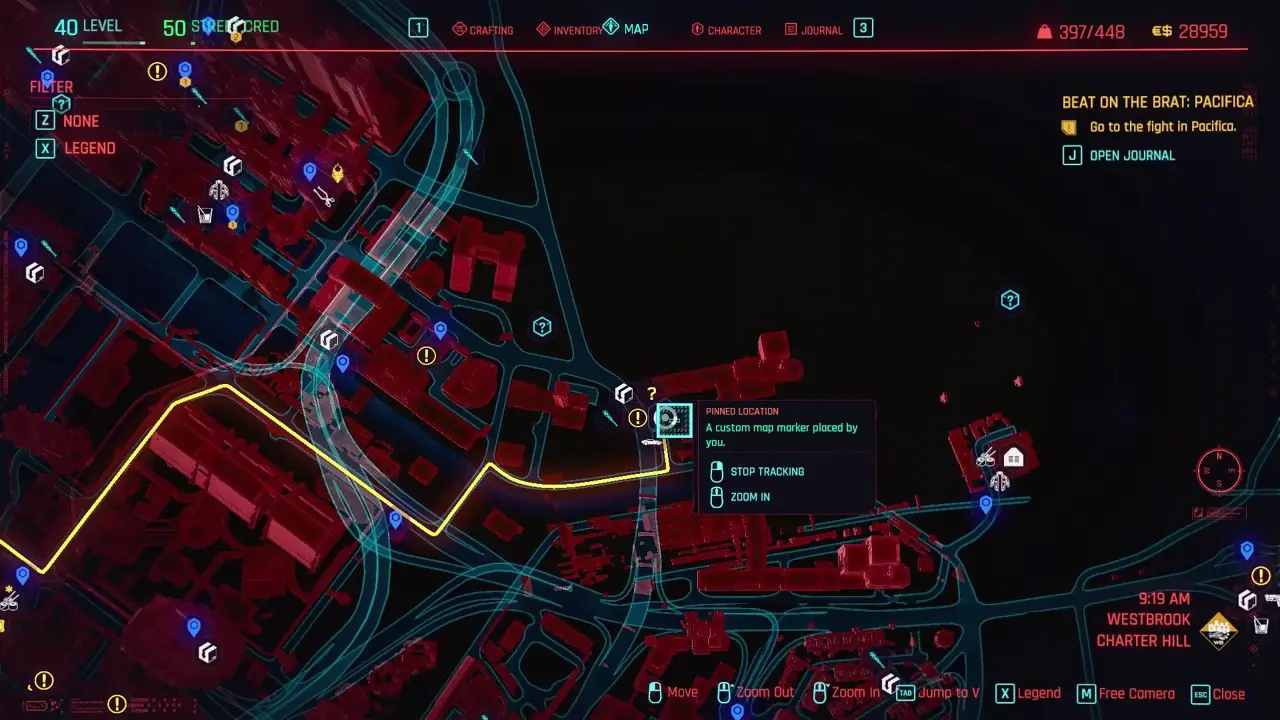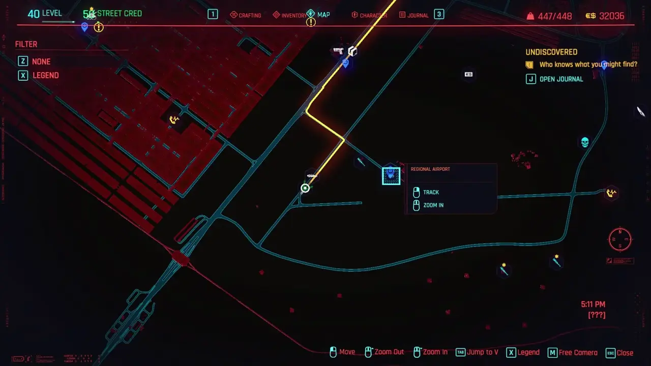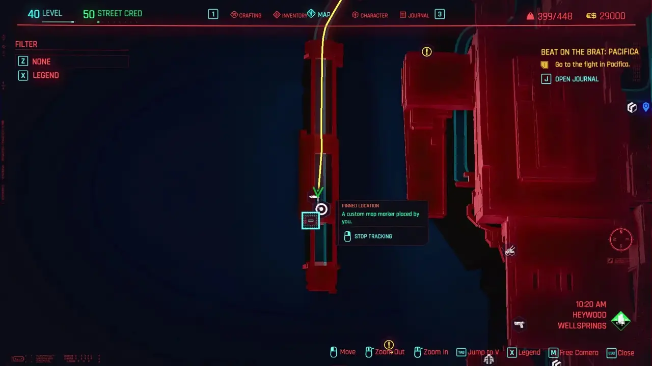 이 모자의 위치는 나이트 시티 외곽의 지역 공항 고속 이동 지점 근처입니다.