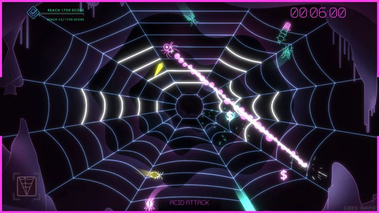 특히, Black Widow: Recharged 를 플레이 하는 것은 그것이 얼마나 간단하고 도전적인지 보면 다소 빨리 지칩니다. 아케이드 게임을 몇 번 시도하고 몇 가지 도전 과제를 완료하면 모든 것이 상당히 지루하고 반복됩니다. 그래픽은 주로 네온 라인으로 보는 이 부서에서 확실히 도움이 되지 않습니다. 확실히 더 많은 개성을 사용할 수 있습니다. 마지막으로 적의 벌레나 발사체에 걸려 먼지를 물 때마다 거의 놀라움을 금치 못한다. 이 문제를 해결하기 위해 적이 매우 가까이 있을 때마다 감속과 혼합된 일종의 시각적 표시가 있으면 정말 좋았을 것입니다. 정말 멋질 것입니다. ߘ