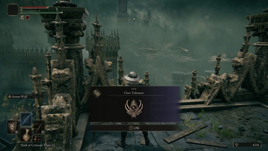 Claw Talisman - 점프 공격을 강화합니다. 이것은 전적으로 선택 사항인 옥상 플랫폼 시퀀스의 끝에 옵니다. Stormveil Castle의 측면 입구를 타고 오래된 종탑의 은혜의 장소에 도달하면 이 섹션에 액세스할 수 있습니다. 정상으로 계속 올라가면 옥상을 가로지르는 꽤 분명한 길이 있습니다.