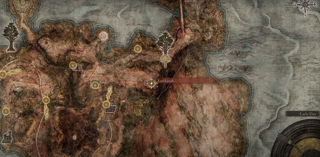 Fort Faroth 외부의 Grace 사이트로 이동하십시오. Fort Faroth에 도달하려면 마지막 공격에서 유사한 경로를 따라갈 수 있습니다. 세 번째 마리카 교회 옆에 있는 호수의 포털로 이동한 다음 지도에 표시된 위치로 이동하세요. 혼란스럽다면 앞서 언급한 익스플로잇에서 지도 위치를 살펴보세요.