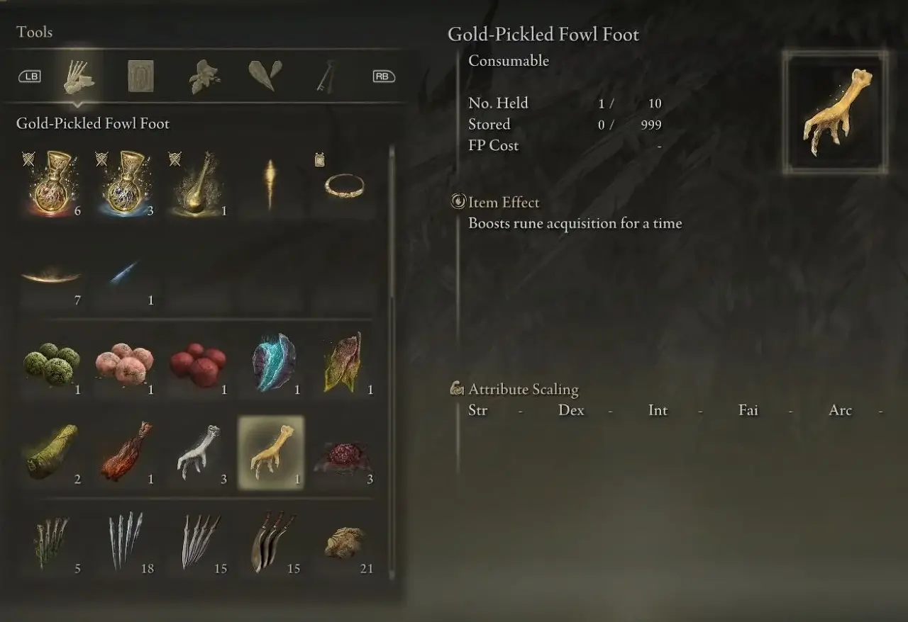 또한 Fringefol의 룬과 같은 소모품에서 룬을 얻을 수 있습니다. 일정 수의 룬을 주는 보상 아이템입니다. 그러나 룬은 죽어도 사라지지 않아 룬의 "은행" 역할을 하므로 비축해 두는 것이 좋습니다. 따라서 실제로 룬이 필요할 때까지 유지하는 것이 좋습니다. 또한 "Lands between Runes"로 알려진 게임 시작 시 Keepsake 를 얻을 수 있으며 플레이어에게 추가 룬도 제공합니다.