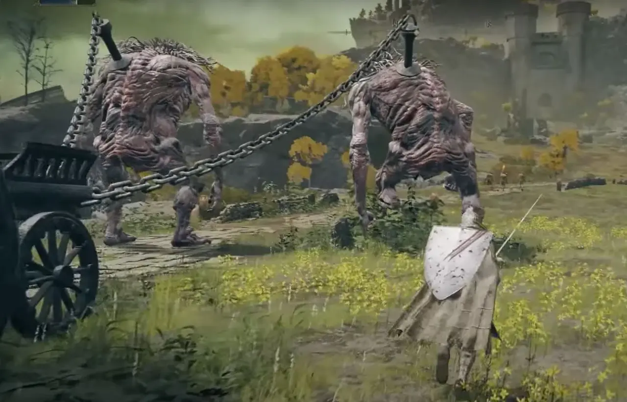 은총의 정문으로 가다보면 아래로 내려가는 길로 갈 수 있다. 이 경로에서 결국 마차를 끄는 두 명의 트롤과 마주치게 되며 결국 여러 병사의 공격을 받게 됩니다. 트롤은 마차에 족쇄가 채워져 있기 때문에 이동하고 빠른 공격을 수행하는 데 어려움을 겪습니다. 그들의 발을 구르는 것을 조심하십시오. 이 트롤을 쉽게 제거하고 실행당 2000개의 룬을 얻을 수 있습니다. 마음의 내용물이 나올 때까지 헹구고 반복합니다.
