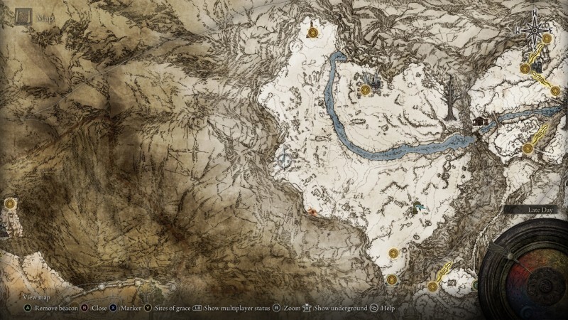 우리의 방법은 전투가 전혀 없으며, 당신의 탈것인 Torrent만 가지고 특정 은총의 사이트로 여행하기만 하면 됩니다. 문제의 지점은 Dragonbarrow 지역 지도의 동쪽 상단 모서리에 있습니다. 이것은 높은 수준의 영역이므로 은총의 사이트로 직진하지 않으면 임의의 몹에게 짓밟힐 가능성이 있습니다. 육지가 반도로 가늘어지기 시작하는 지도의 Erdtree 아이콘을 지나면 Lenne's Rise Site of Grace를 찾을 수 있습니다. 이것은 당신의 자리가 될 것입니다.