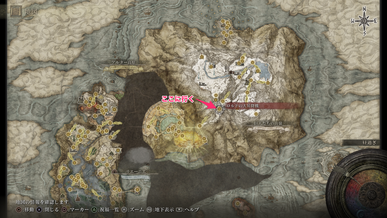 알터 고원보다 먼저, 거인들의 산령의 축복 「솔의 요새, 옥상」에서 승강기로 오른 앞에 떨어지고 있다