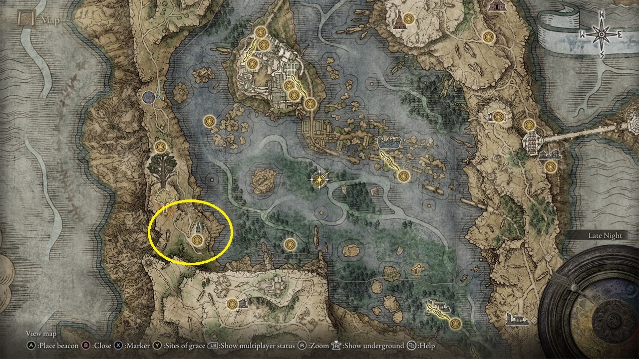 이 메달 조각을 찾으려면 알비나우루스 마을로 가야 합니다. 호수의 Liurnia에서 마을을 찾을 수 있습니다. 서쪽 해안의 늪 지역을 탐험하기만 하면 됩니다. 점령당한 마을을 끝까지 가다 보면 마을 지도자에게 자신의 은신처에 머물기를 간청하는 영혼을 보게 될 것입니다.