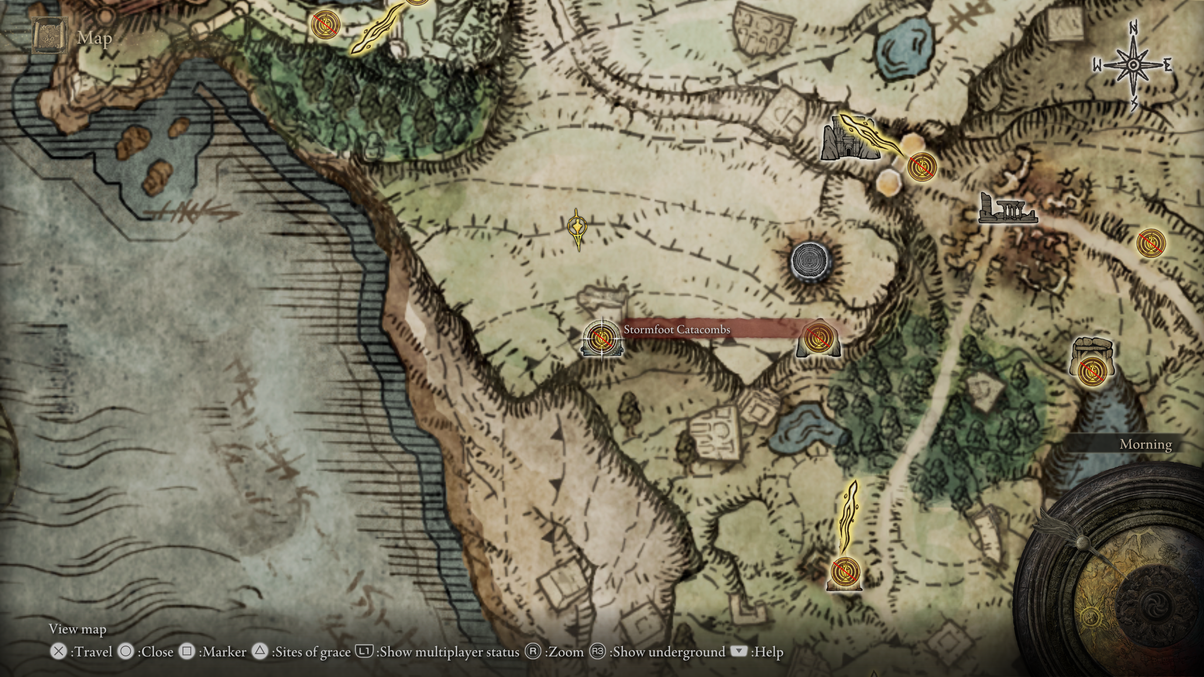그의 영혼 재는 Stormfront Catacombs에도 있으며, 내부의 보스인 Erdtree Burial Watchdog 을 물리친 것에 대한 보상입니다 .