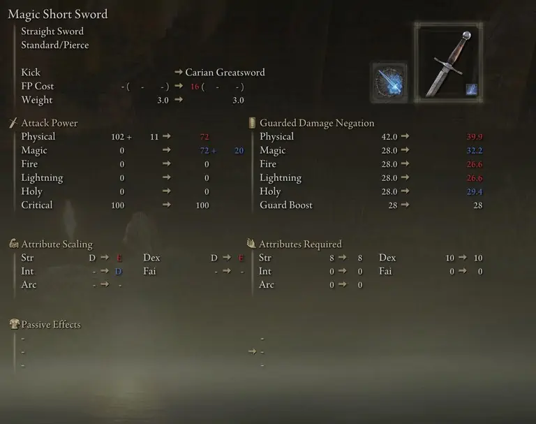 통계 옆에 단순한 예 또는 아니오가 아닌 문자가 있다는 것을 눈치채셨을 것입니다. 이 문자는 무기가 특정 능력치에 따라 얼마나 강하게 확장되는지를 결정합니다. 일반적으로 E에서 A까지의 범위를 가지며 E가 가장 나쁩니다. 그러나 일부 무기는 A 등급을 넘어 최고인 S 등급까지 올라갈 수 있습니다. 더 나은 스케일링을 갖는 것은 좋기도 하고 나쁘기도 합니다. 관련 스탯이 낮고 스케일링이 좋지 않은 무기가 있는 경우 스케일링이 약한 무기를 사용하는 것보다 더 나쁜 피해를 입힐 수 있습니다.