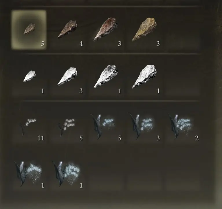 대장간은 무기를 업그레이드하는 주요 방법입니다. 게임을 진행하면서 무기를 더 높은 레벨로 업그레이드할 수 있는 더 큰 조각의 대장간을 찾을 수 있습니다. Smithing Stones는 빛나는 아이템으로 발견되며 일부 적에게서 떨어질 수 있습니다. 그들은 주로 광산에서 발견됩니다. 일반적인 제작 재료가 아닙니다.