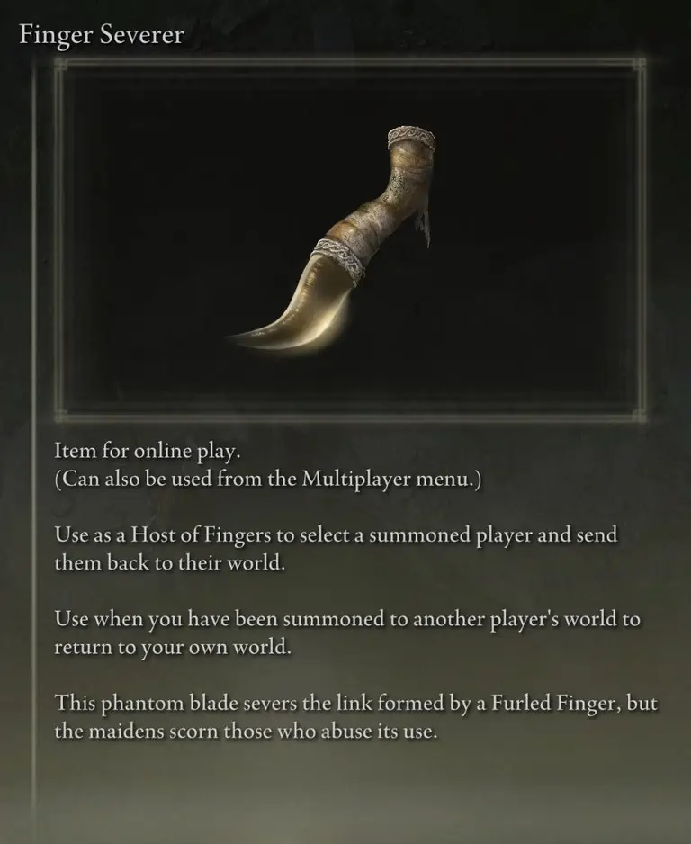 목표가 완료되기 전에 다른 세계를 떠나고 싶거나 협동 파트너를 자신의 세계에서 쫓아내고 싶다면 좌초된 묘지에서 주울 수 있는 Finger Severer 아이템을 사용할 수 있습니다.