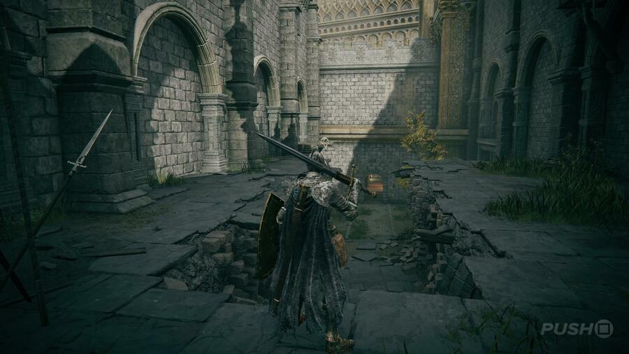 바위와 나무로 가득한 지역으로 내려가고 중간 경로 끝에 또 다른 은혜의 장소가 있습니다. 그것과 상호 작용하지만 날아 다니는 새를 조심하십시오. 발톱에 칼날이 붙어 있어 죽이기 어려울 수 있습니다. 사이트 오브 그레이스( Site of Grace )의 오른쪽에는 오를 수 있는 바위와 성의 외벽으로 올라가는 계단이 있습니다. 그들을 따라가면 적군과 마주치게 됩니다. 그들을 죽이지 만 주변 환경을 조심하십시오. 그들이 당신을 옆으로 밀어내는 것은 쉬울 수 있습니다.