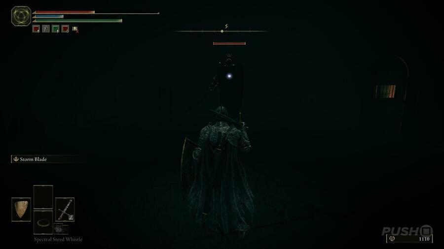 당신이 온 입구에서 벽의 큰 그림이 뒤쪽에 있도록 좌회전하여 앞쪽 방으로 들어갑니다. 여기에는 이전 은혜의 사이트로 돌아가는 지름길을 만들 수 있는 엘리베이터가 있습니다 . 건강이 재생되고 신성한 플라스크 가 가득 찬 상태에서 방금 있던 곳으로 돌아가서 이제 방의 뒤쪽 왼쪽 모서리에 있는 출입구로 들어갑니다. 당신 앞에는 적들로 가득 찬 Stormveil Castle 의 메인 광장이 있습니다.
