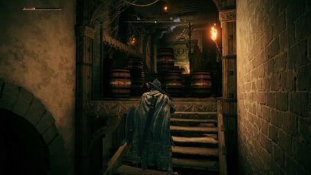 그들을 향해 질주하여 재빨리 처치한 다음, 상단 난간에 있는 적이 서 있는 방향으로 향하십시오. 잠긴 문을 방금 지나갔고 우리가 열어야 하는 문이라는 것을 알게 될 것입니다. 또 다른 폭발적인 함정이 당신을 기다리고 있습니다. 다시 한번 전방의 적을 미끼로 화약을 날려버리세요. 처리가 완료되면 왼쪽에 있는 파편을 통과하여 계단을 올라갑니다. 당신의 오른쪽에는 엄청나게 어두운 방이 있을 것입니다. 불행하게도 그곳에는 우리가 필요로 하는 열쇠와 함께 강력한 적이 기다리고 있습니다.