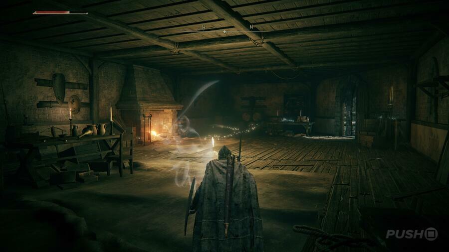 들어갈 때 웅크리고 왼쪽 벽을 껴안는 것이 좋습니다. 키 큰 기사 뒤로 물러나면 전투를 시작할 수 있는 손쉬운 백스탭 기회가 생깁니다. 패배하면 Rusty Key 를 얻을 수 있습니다 . 방을 나와 아래 층으로 내려가 잠긴 문과 상호 작용하십시오. 이제 우리가 발전할 수 있도록 열려 있습니다.