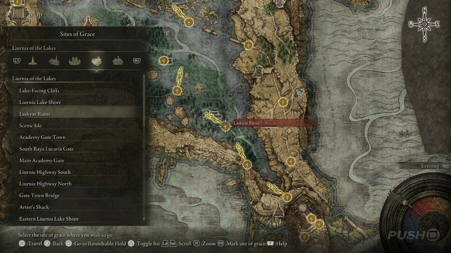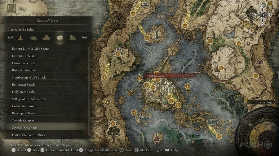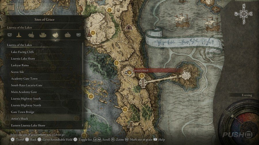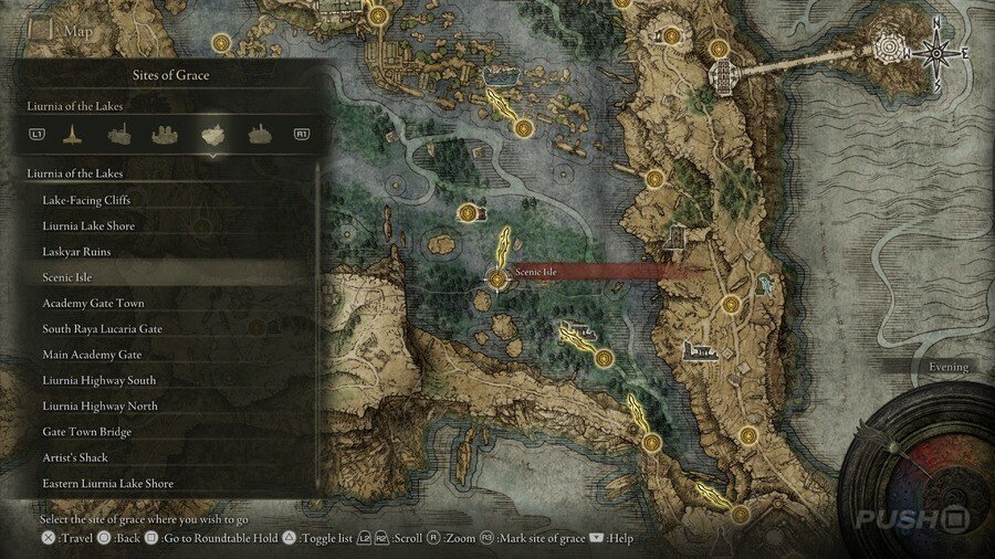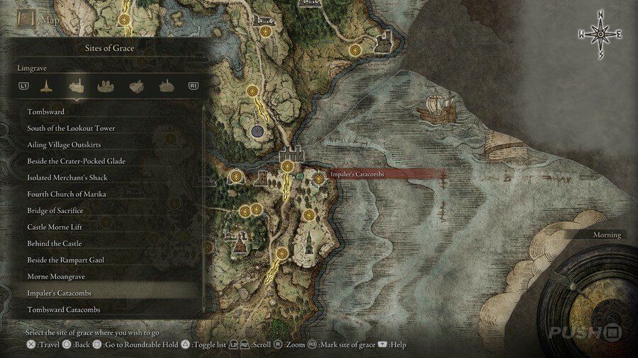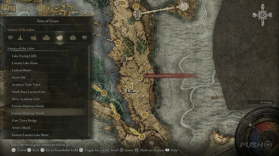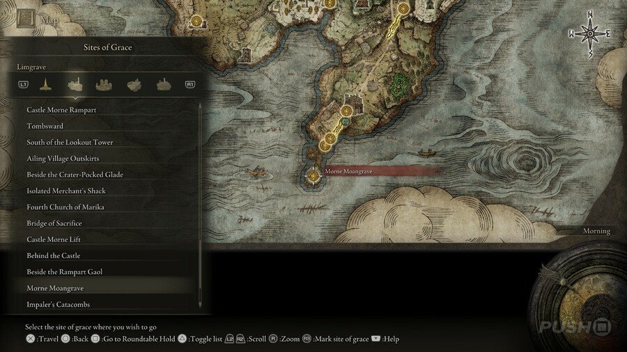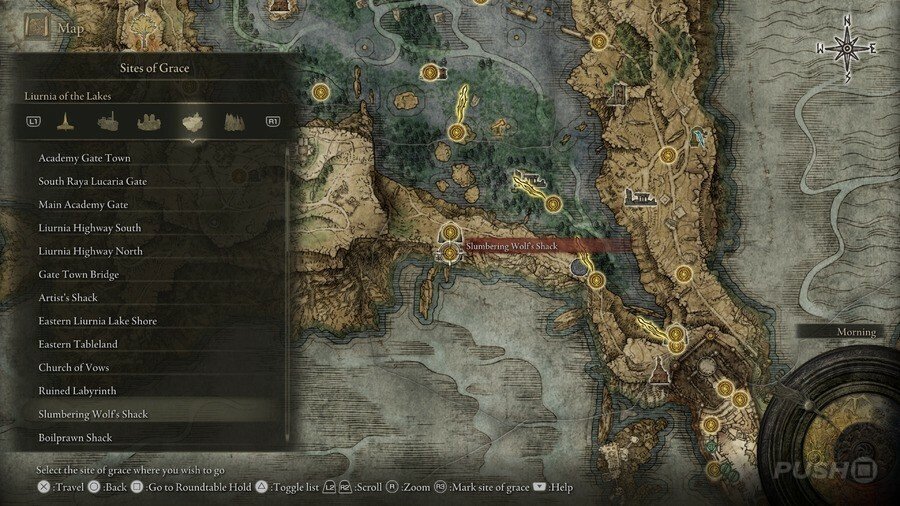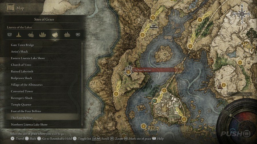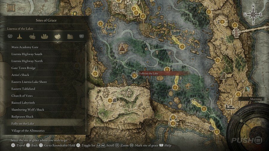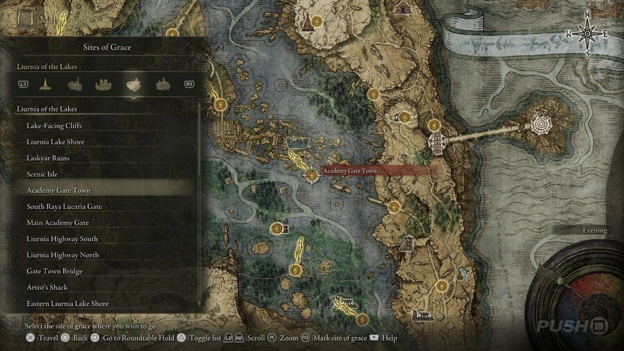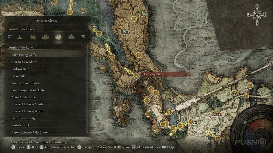 처음부터 당신은 Limgrave , Stormveil Castle , Weeping Peninsula , Caelid 의 은총 의 장소에만 접근할 수 있다는 점에 유의하십시오 . 다른 지역에서는 보스를 물리쳐야 액세스할 수 있습니다.