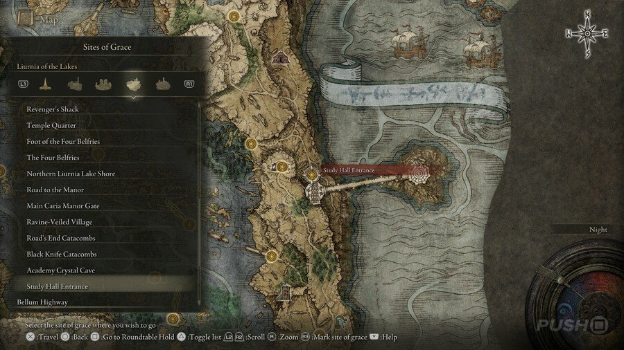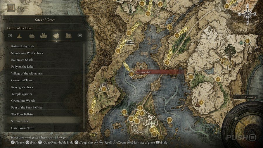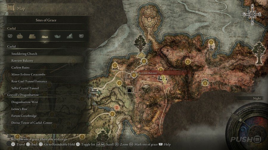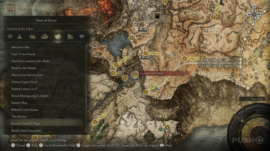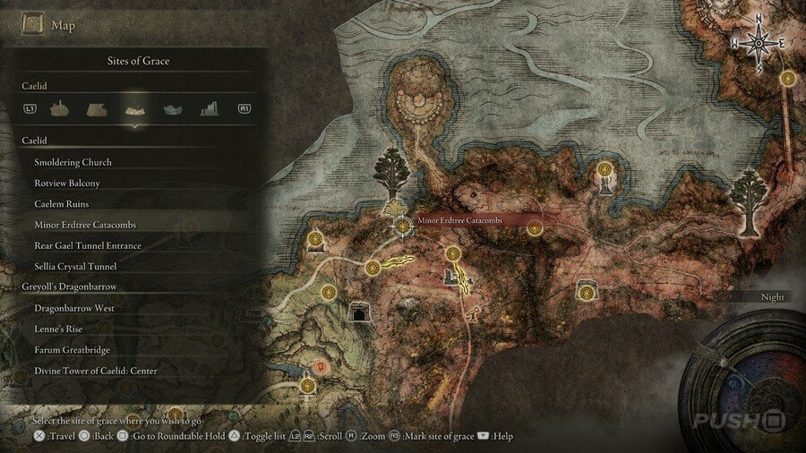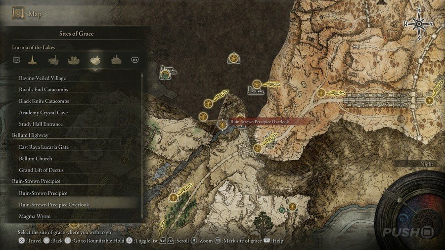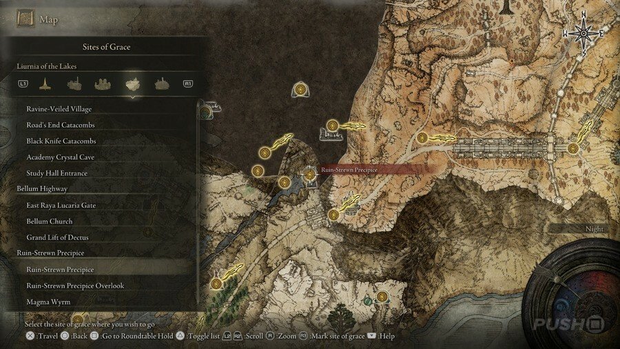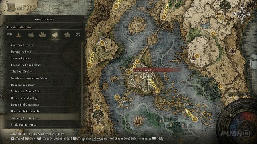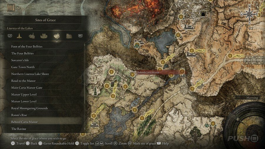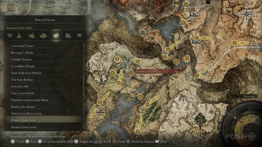 처음부터 당신은 Limgrave , Stormveil Castle , Weeping Peninsula , Caelid 의 은총 의 장소에만 접근할 수 있다는 점에 유의하십시오 . 다른 지역에서는 보스를 물리쳐야 액세스할 수 있습니다.