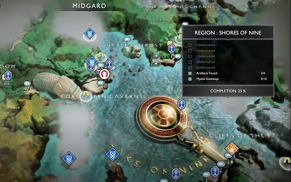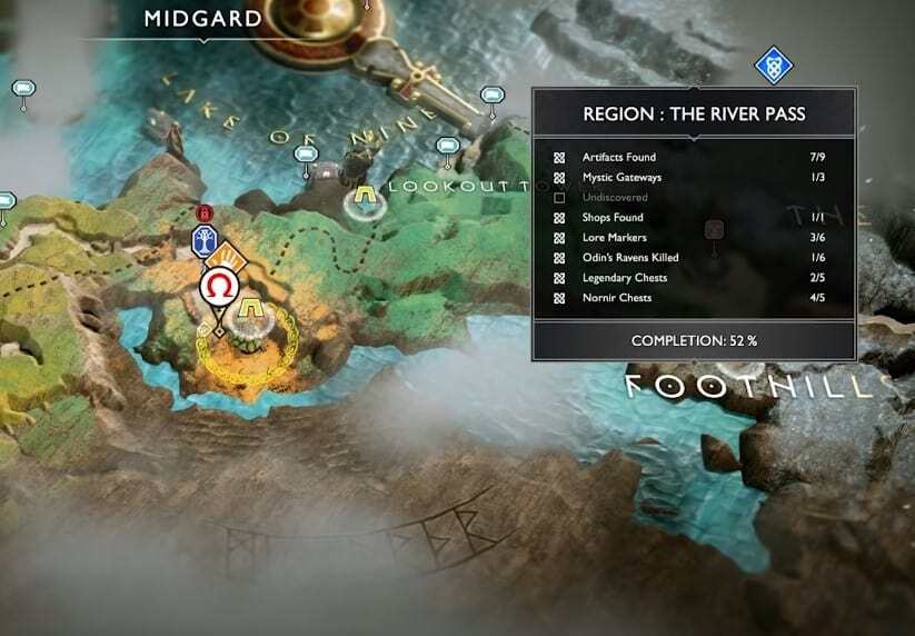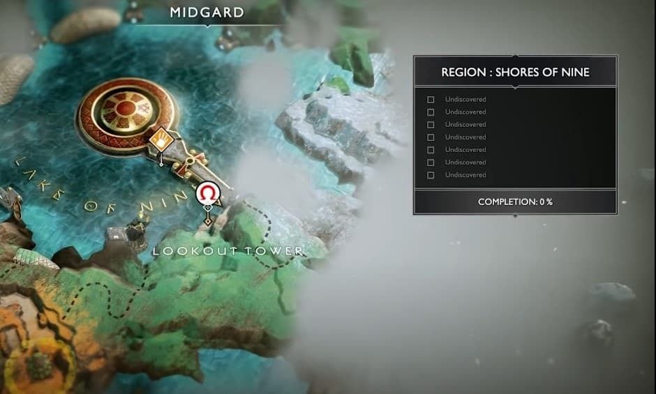 God of War 보물 지도를 수집하고 Atreus가 해독하면 다음 위치는 보물이 있는 감시탑입니다. 아홉 호수의 남동쪽에 있다.