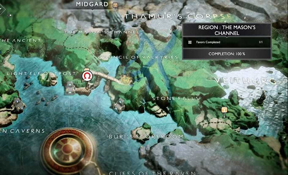 Atreus가 그것을 해독하면 다음 목적지가 드러납니다. 이 지도의 보물은 Veithurgard에 있습니다. 이 보물을 모으는 가장 쉬운 방법은 'Otr의 투옥' 호의 동안입니다.