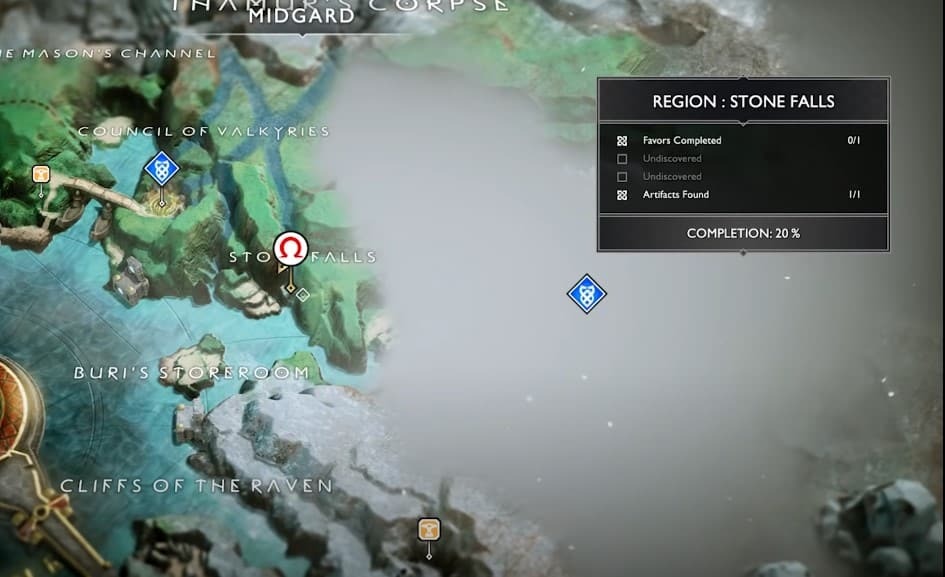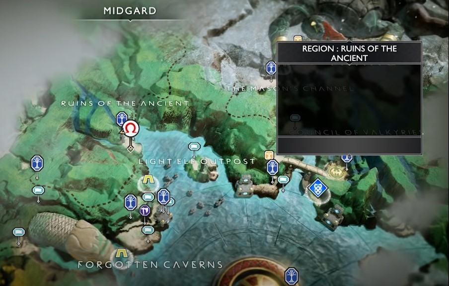 이 지도는 'Sindri's Fafnir's Hoard' 호의를 받고 있을 때 가장 쉽게 수집할 수 있습니다. 지도를 수집하고 Atreus가 그것을 해독하도록 하십시오.