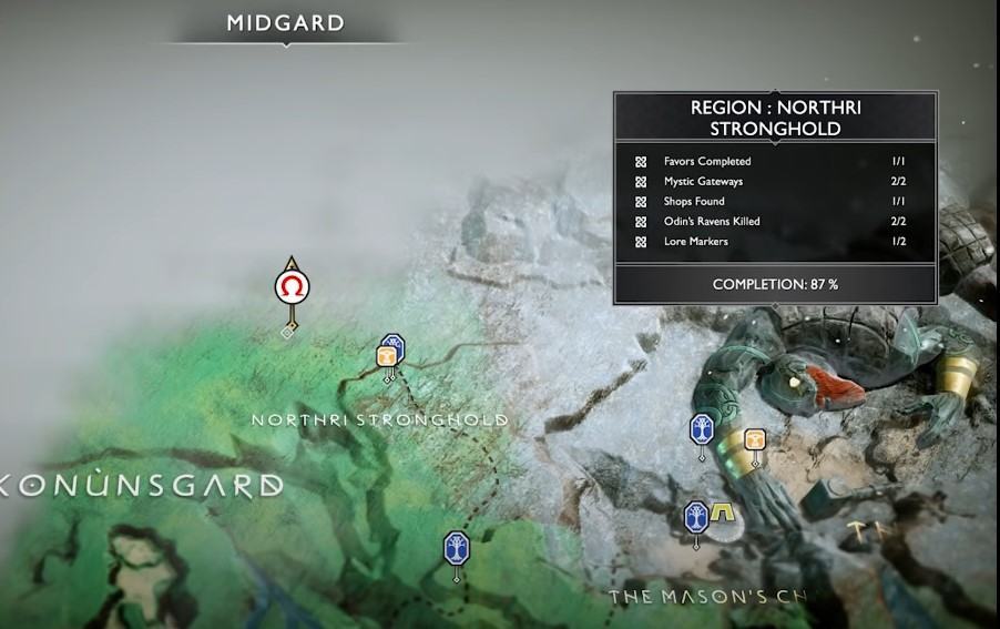 부서진 장비 근처의 상자 바로 옆에 있는 지도를 찾으십시오. Atreus가 그것을 해독하면 보물의 위치가 Northri Stronghold라는 것을 알게 될 것입니다.