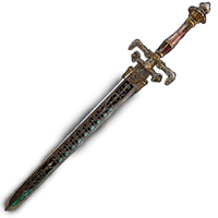 밤과 불꽃의 검은 Carian Manor에서 찾을 수 있으며 전설적인 무기입니다. 그것은 각각 C 척도와 함께 각각 24의 지능과 신앙 등급을 요구합니다. 강력한 패스트 슬래시로 구성된 일반 기술을 가지고 있습니다. 그것의 무기 예술은 그것이 빛나는 곳이며 R1과 R2에 따라 엄청난 양의 화염과 마법 피해를 입히며 이러한 공격은 PvP 적에게도 원샷 할 수 있습니다. 버프 및 주입할 수 없으며 음침한 대장간 돌을 사용하여 업그레이드됩니다.