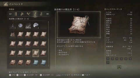 또, 방어구 중에는 「〇〇의 효과를 올린다」라고 하는 특수 스테이터스가 붙어 있는 경우도 있다. 그런 특수효과를 노려 장비해 가는 것도 좋을 것이다. 게다가, 「아무래도 이것으로 하고 싶지만, 장비 중량이 중량이 되어 버린다」라고 하는 경우, 장비 중량의 상한을 올리는 탈리스만을 장비하거나, 혹은 지구력을 올리게 된다.
