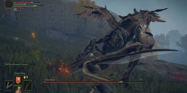 예를 들어, 위핑 반도의 데스버드는 죽일 때마다 FP를 회복하는 희생 도끼를 떨어뜨립니다. Liurnia of the Lakes의 Deathbird는 HP가 낮을 때 플레이어의 피해를 증가시키는 부적 인 Red-Feathered Branchsword를 떨어뜨립니다. 네 번째는 Caelid에서 찾을 수 있고 다섯 번째는 왕도 Leyndell 외곽에서 찾을 수 있습니다.