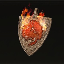 | "붉은 고대 용을 묘사한 부적. 화염 피해 무효화를 증가시킵니다. Erdtree 이전 선사 시대를 지배했던 고대 용은 자신의 주를 살아있는 바위의 벽으로 보호할 것입니다. 그래서 용의 모양이 이렇게 되었습니다 . 모든 종류의 보호를 상징합니다." |