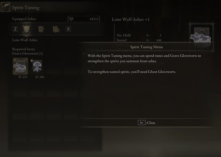 영혼 재의 티어를 높이려면 룬과 Grave Gloveworts를 사용해야 합니다. 네임드 스피릿을 강화하려면 고스트 글로브워드가 필요합니다.