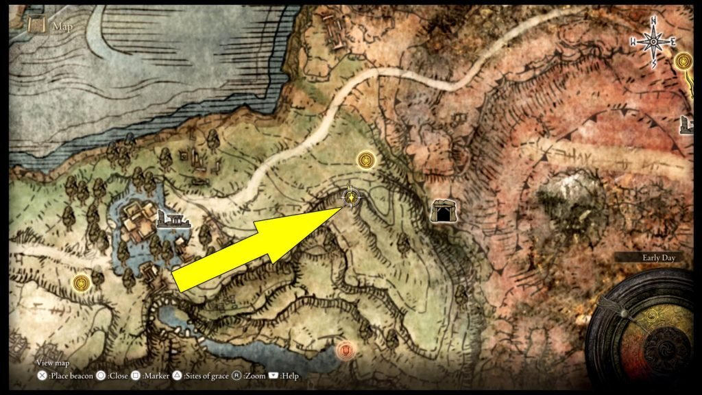 Alexander Iron Fist 또는 대형 Elden Ring 찻주전자를 찾을 수 있는 첫 번째 위치는 Saintsbridge Site of Grace 바로 남쪽의 Limgrave입니다.