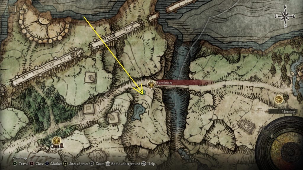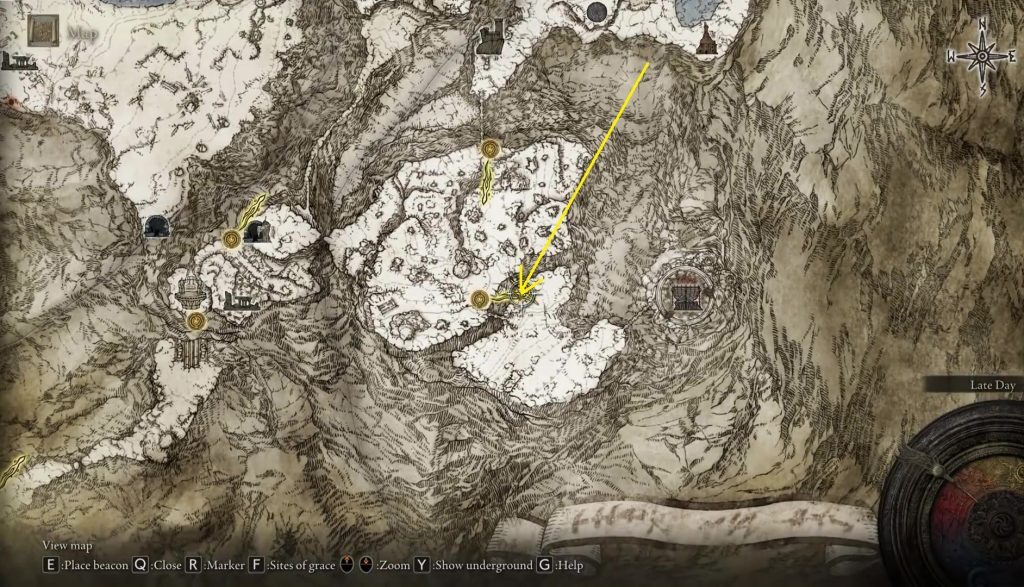 다음 위치로 이동하려면 아래와 같이 Altus Plateau에 있는 Se ethewater Terminus Site of Grace로 가십시오.