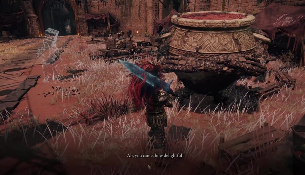 이제 아래와 같이 Caelid 의 남쪽 끝에 있는 Redmane Castle 에서 Alexander를 찾을 수 있습니다. Alexander를 찾지 못하더라도 앞의 두 위치에서 그는 여기에 있을 것입니다. 라단 장군과 싸우기 전에 그와 대화할 수 있습니다. Rahadn 장군의 보스전에서 그를 소환할 수도 있습니다. 전투를 시작하려면 Radahn에 도전해야 합니다. Radahn이 당신의 도전을 수락하도록 하는 방아쇠는 특정 수의 보스를 물리치는 것입니다. Radahan이 도전을 수락하기 위해 물리쳐야 하는 보스의 수는 아직 명확하지 않습니다. 따라서 Radahan이 당신의 도전을 받아들이지 않는다면 당신은 더 많은 보스를 물리쳐야 할 것입니다. 라단을 처치한 후 보스의 은신처에서 알렉산더와 다시 대화할 수 있습니다.