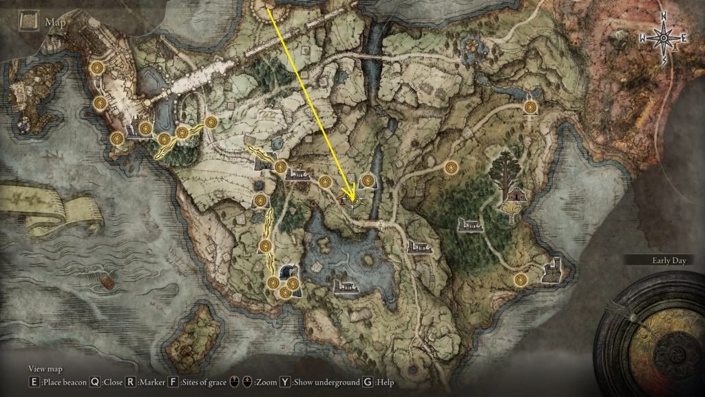 Limgrave East에서는 아래 사진에 표시된 위치에서 음성이 들립니다. 음성은 다음 과 같이 말할 것입니다. 못 본 척 그만해 ”