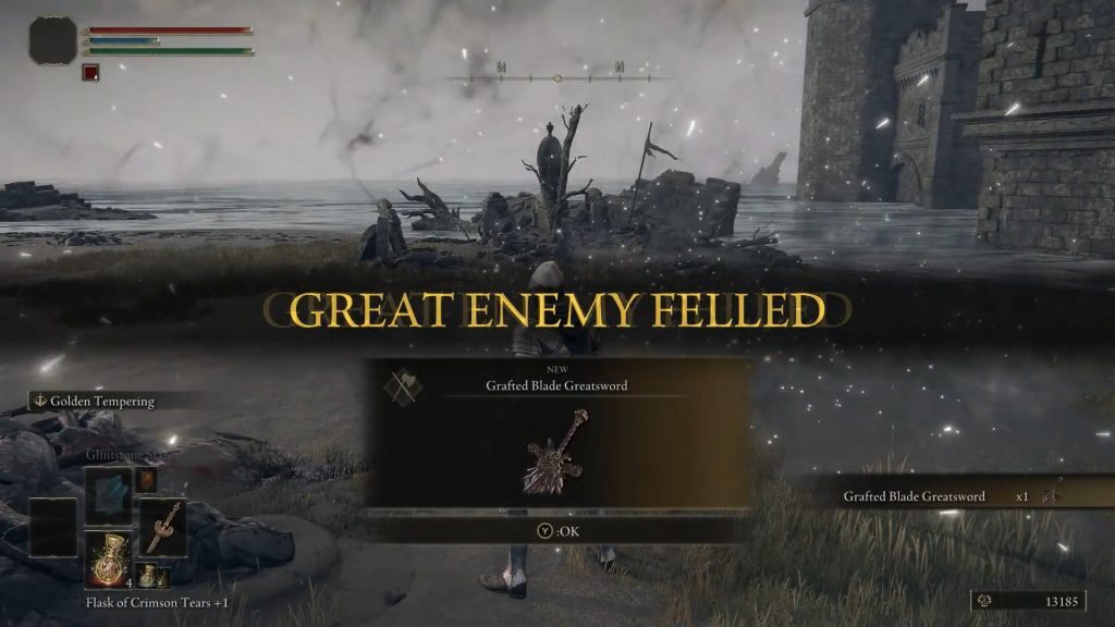 이리나의 아버지와 대화 후, 몬성 남쪽으로 이동하여 아래 사진과 같이 지역 보스(Leonine Misbegotten)를 처치하세요. 그것은 접목된 칼날 대검 을 떨어뜨릴 것 입니다.