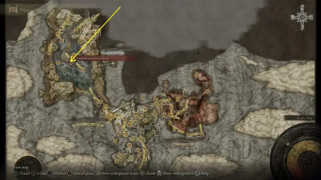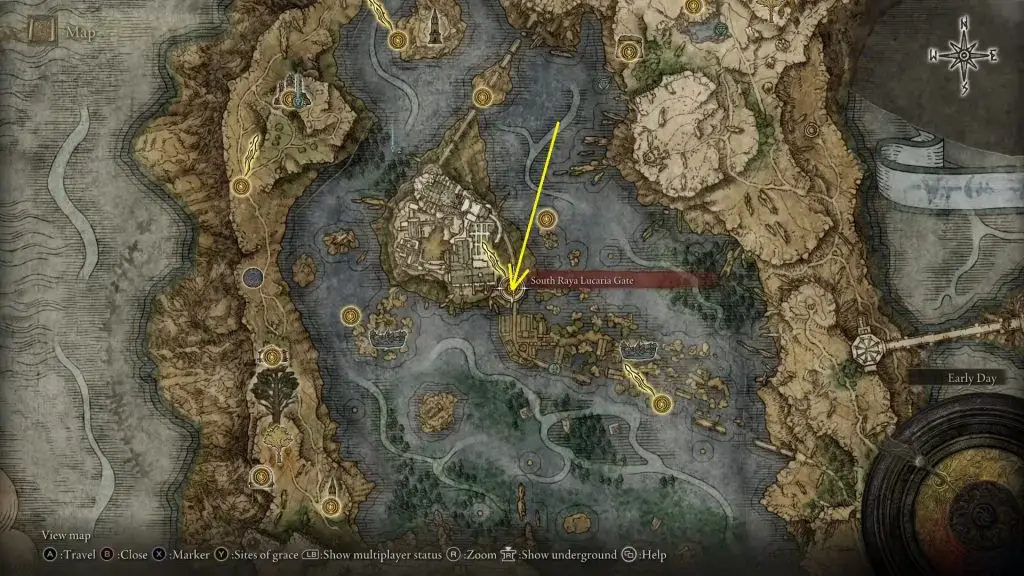 아래 사진과 같이 은혜 의 “ 사우스 라야 루카리아 게이트 ” 자리 근처에 아카데미 입구가 있습니다. 라야 루카리아 아카데미에 입장하려면 문의 열쇠를 사용하세요. 학원 안에 있는 레드 울프 오브 라다곤을 처치하세요.
