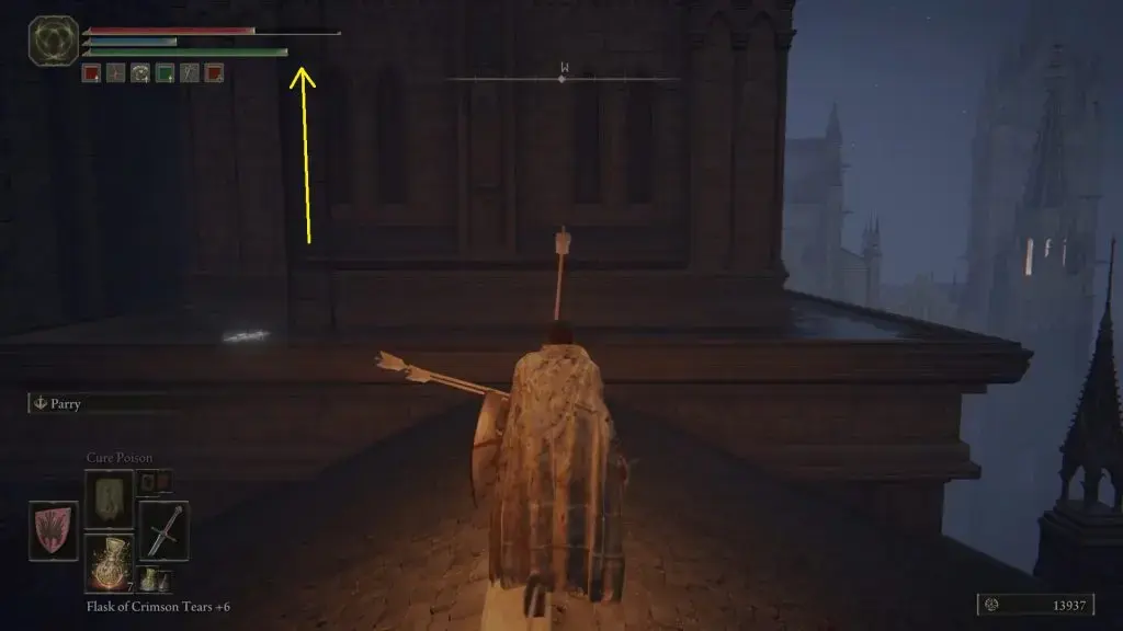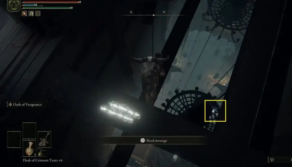 이 건물의 기둥 위를 걷고 샹들리에 위로 뛰어내리면 글린트스톤 열쇠를 얻을 수 있습니다.