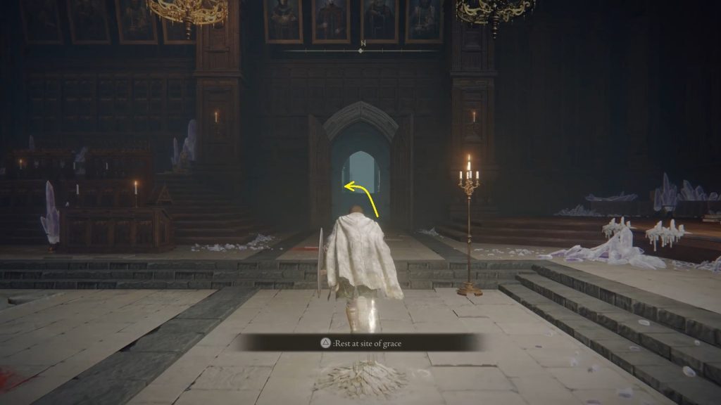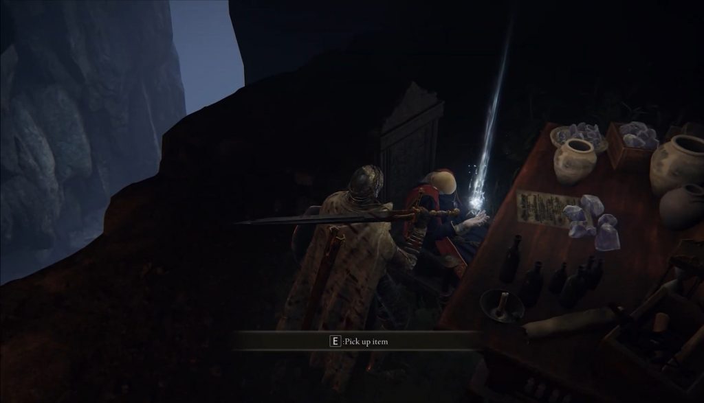 템플 쿼터 에서 북쪽으로 가면 아래 사진과 같이 조각상에 앉아 있는 글린트스톤 열쇠를 발견할 수 있습니다. Glintstone 열쇠를 얻으면 이제 학원에 들어갈 수 있습니다.
