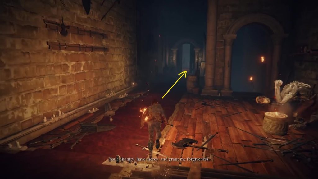 잠시 후 원탁 회의장 으로 돌아오십시오 . D & Fia는 해당 위치에서 찾을 수 없습니다. 대장간을 지나 아래 사진과 같이 방으로 이동합니다. 그곳에서 D가 죽은 것을 발견할 것입니다. D의 몸에서 결합된 갑옷 세트 를 수집 하십시오. 이 갑옷 세트를 수집하고 나중에 퀘스트 라인에서 필요하므로 보관하는 것이 매우 중요합니다.