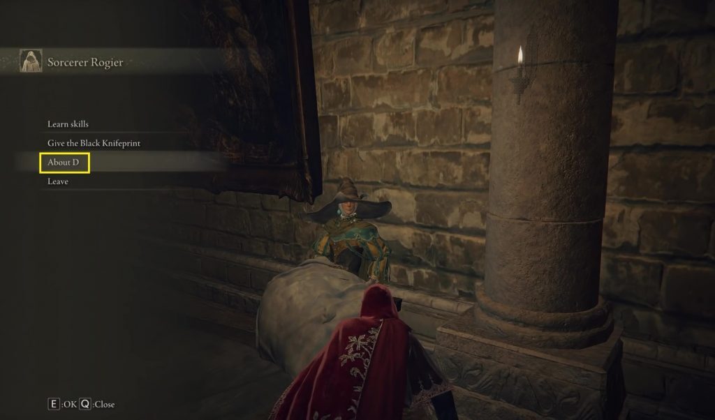 원탁 회의에서 D에 대해 마법사 로지에와 대화하십시오. 게임 후반부에 그가 D와 관련된 몇 가지 중요한 정보를 제공할 것이기 때문에 D에 대해 계속 이야기하십시오.