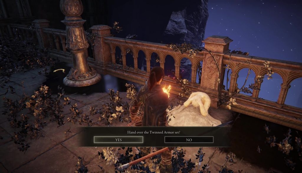쌍둥이 방어구 세트 를 D의 형제 에게 주었다면 그는 피아의 퀘스트 라인 이 끝날 때 그녀의 시체 옆에 서 나타날 것입니다. 이것으로 퀘스트 라인이 완료됩니다. 이제 D의 형제를 죽이고 Inseparable Sword 와 함께 Twinned Armor Set 를 다시 얻을 수 있습니다. 그를 죽이지 않으면 나중에 그 위치에 올 수 있으며 그는 당신이 취할 수 있는 Twinned Armor Set 를 떠났을 것입니다.