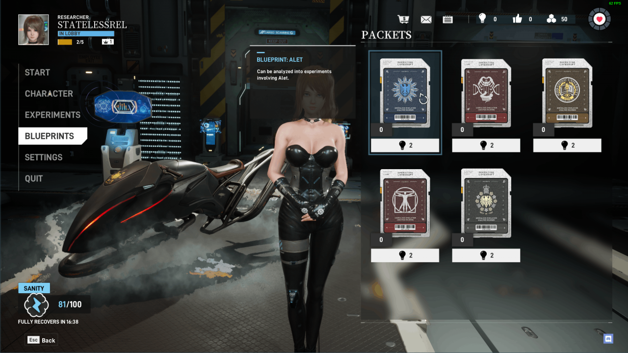 여기에는 "Blueprints" 메뉴를 사용하여 지금까지 잠금 해제한 카드/섹스 포즈가 있습니다.