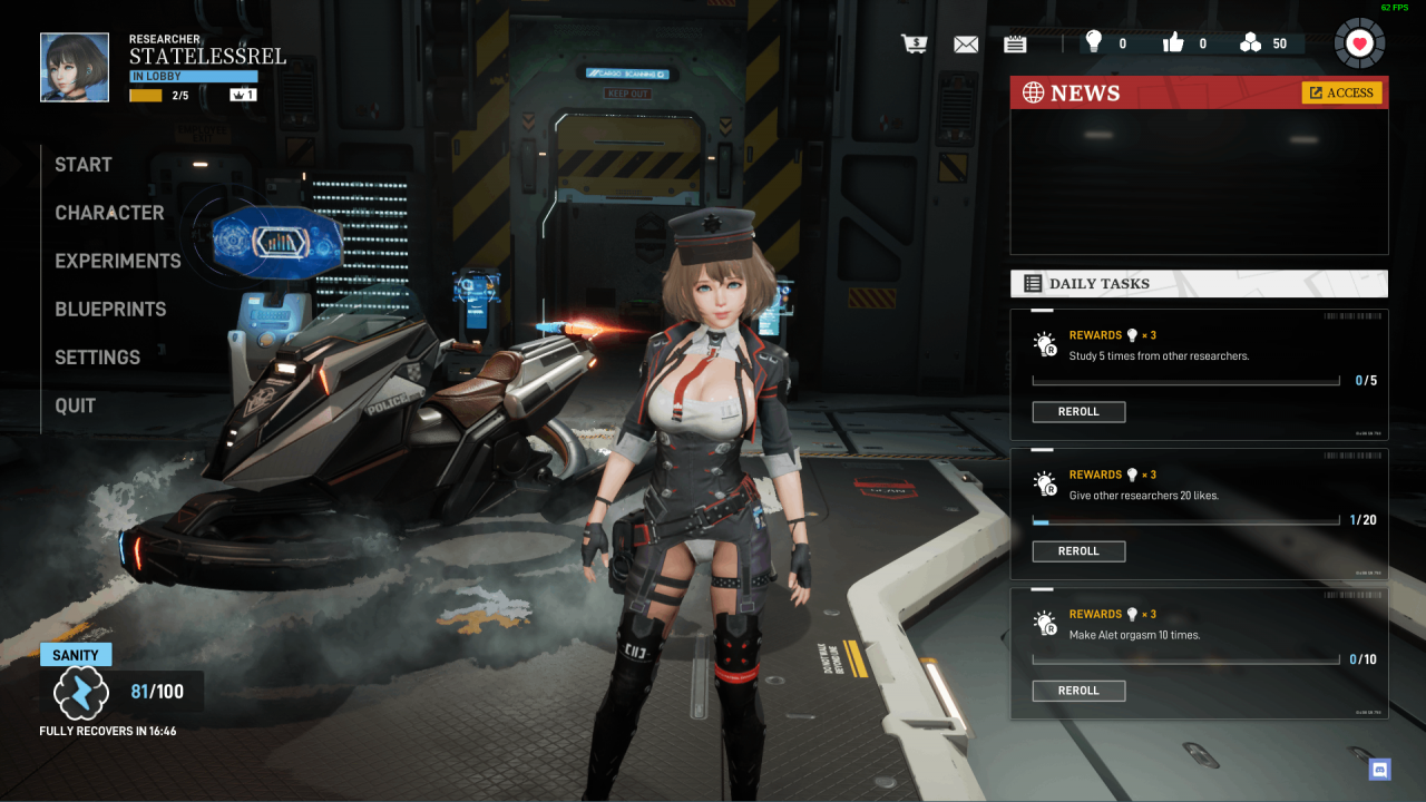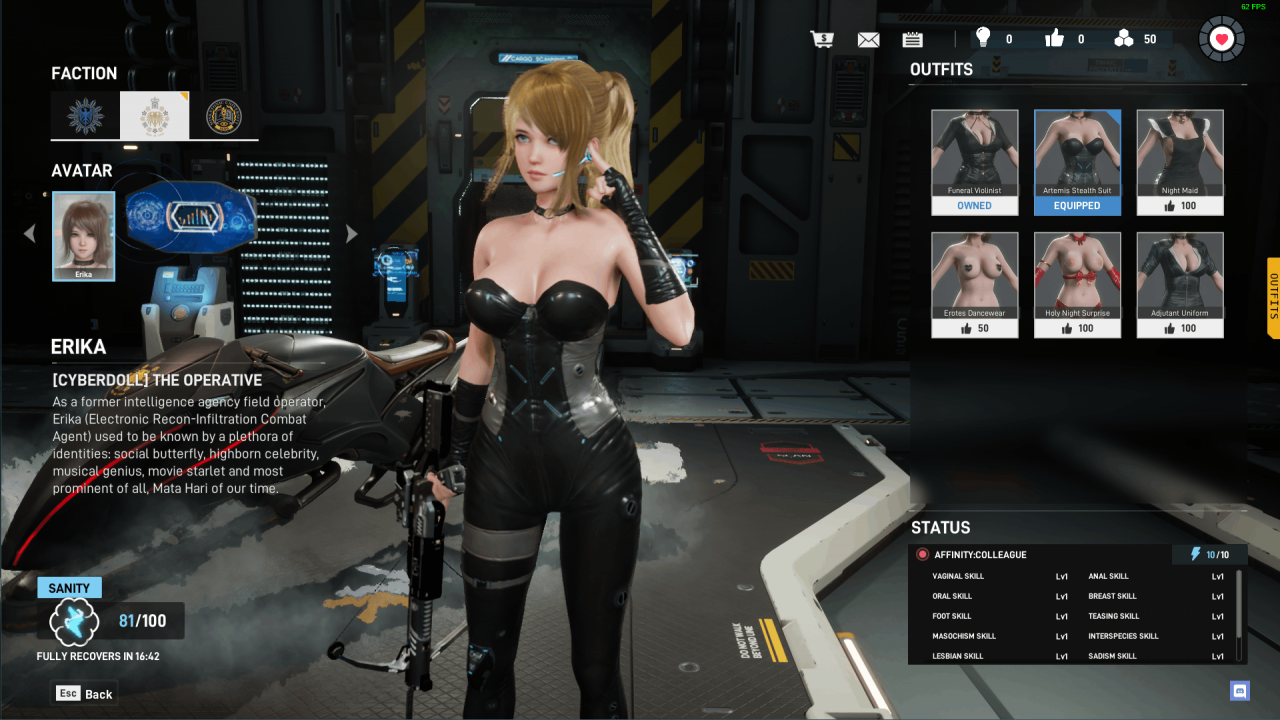Character Sexual Stats: 앞으로 나올 "Affinity" 및 "Skill" 시스템으로 레벨이 올라갈 것으로 보입니다.