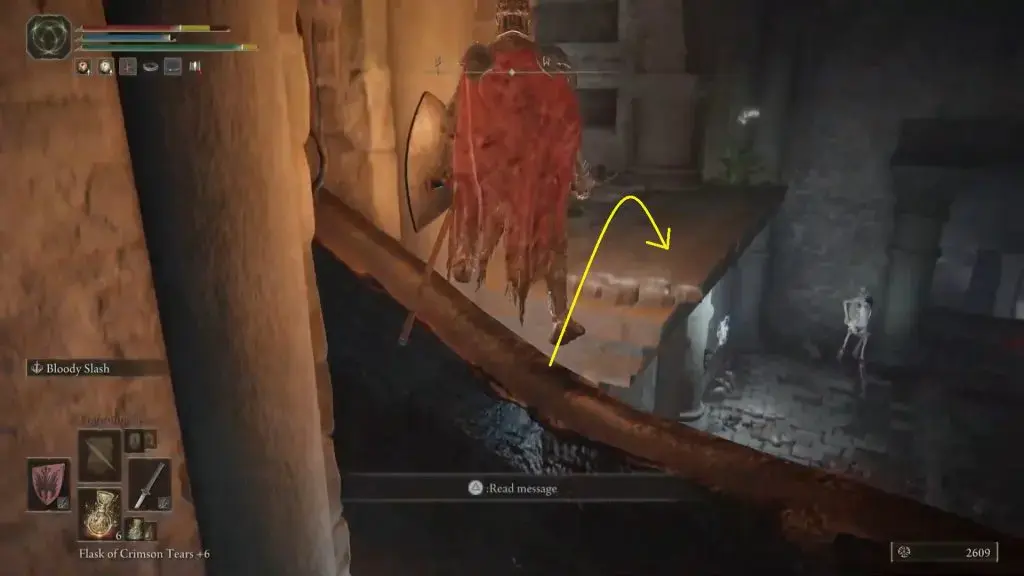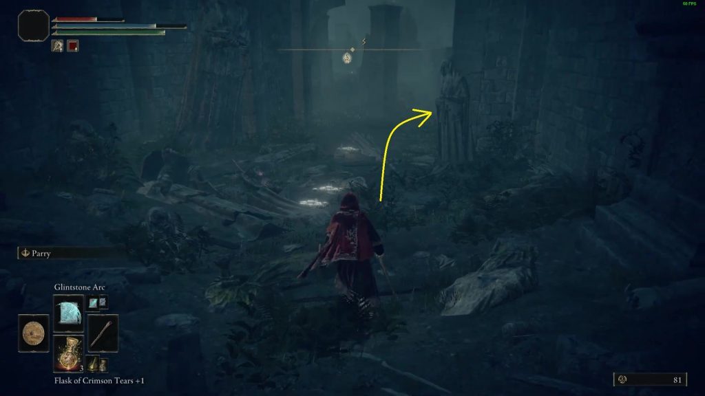 아래 사진과 같이 Liurnia 에 있는 Black Knife Catacombs로 이동 합니다. Black Knife Catacombs의 전체 가이드를 보려면 여기를 클릭하십시오 .